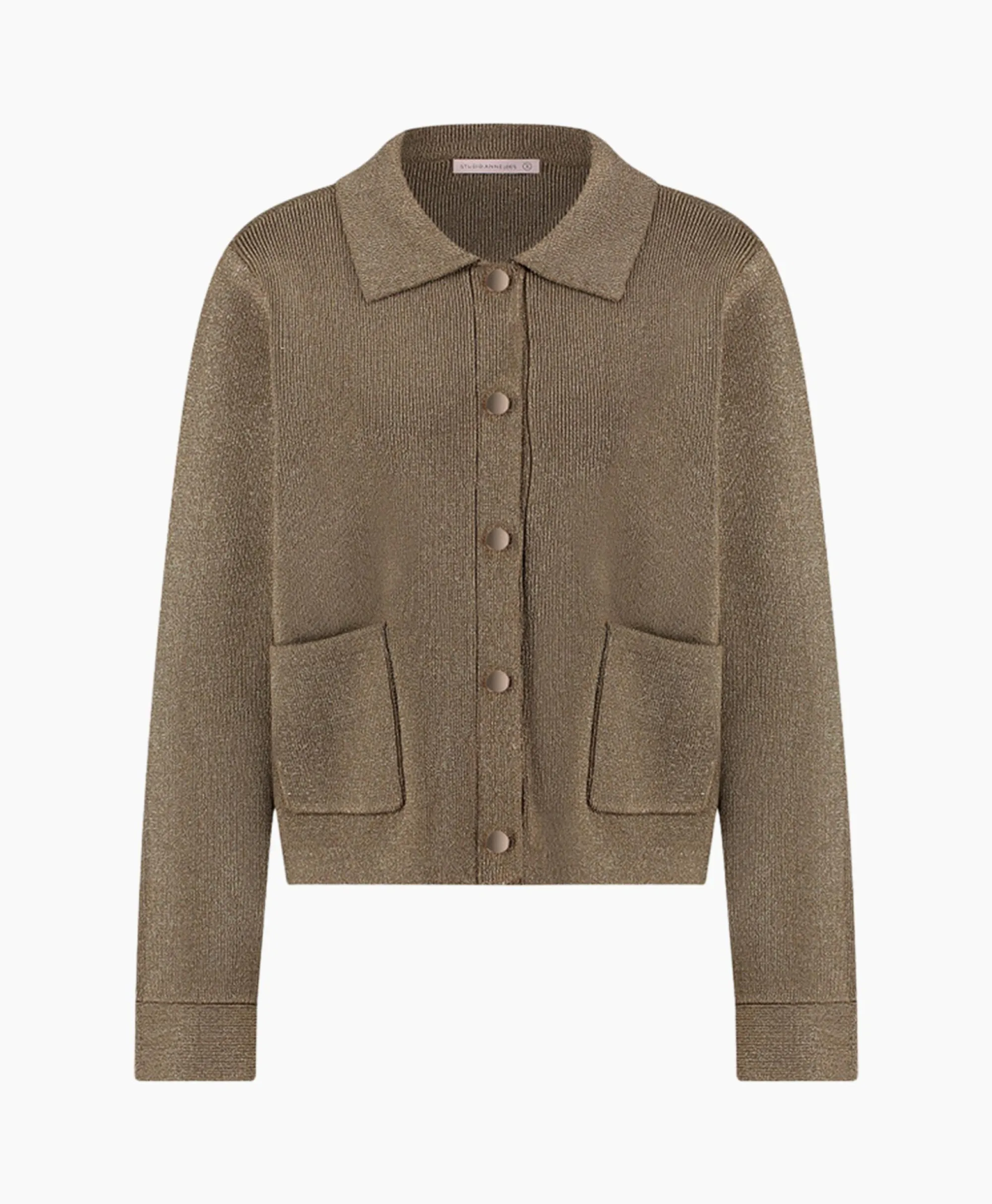 De Imke Lurex Cardigan Van Studio Anneloes Is Echt Een Plaatje. De Earth Kleurige Cardigan Heeft Gouden Garen En Drukknopen. Imke Is Leuk Om Te Dragen Als Vestje Of Als Top. Perfect Te Combineren Met Andere Items In De Kleur Earth Voor Een Feestelijke Look.&Nbsp;