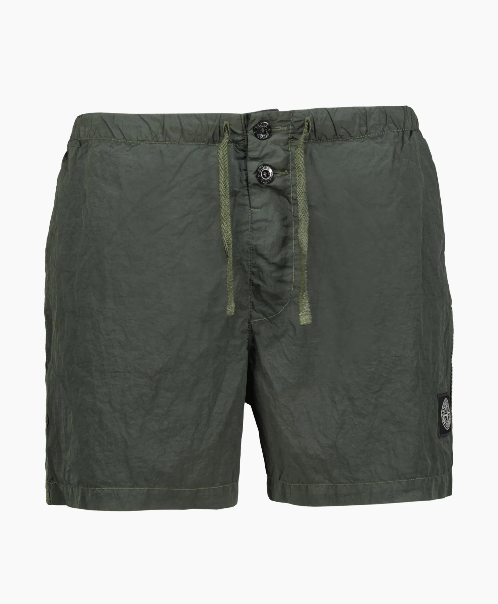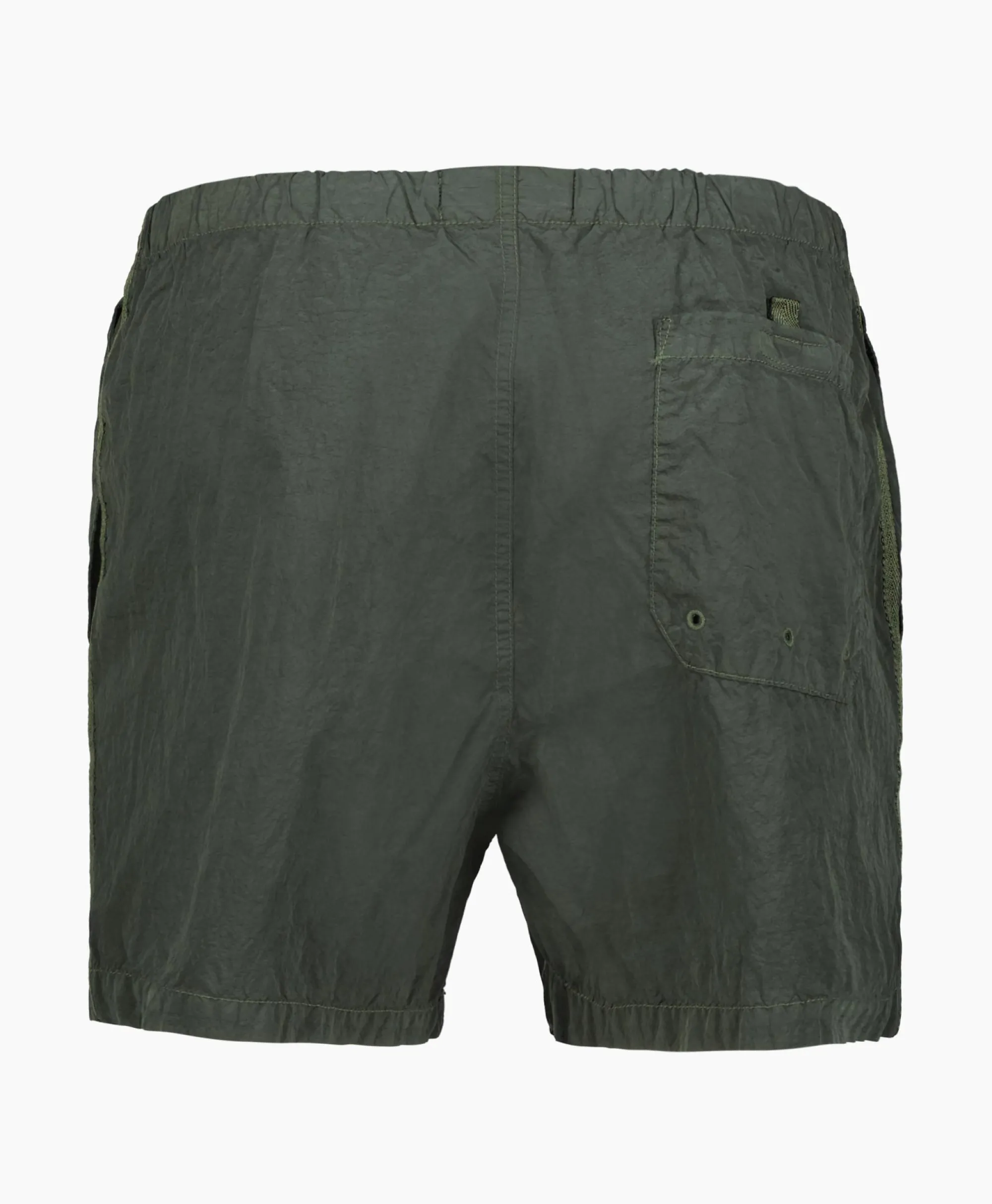 Zwembroeken Gemaakt Van Een Nieuwe, Verantwoorde Stone Island Iriserende Nylon Metaalstof. Bij De Evolutie Van Deze Iconische Stof Wordt Gebruik Gemaakt Van Geregenereerde Econyl®-Garens: Nylon Aan Het Einde Van De Levensduur, Pre- En Post-Consumptie Nylon Wordt Gerecycled Met Een Complex Depolymerisatieproces Om Dit Garen Te Creëren Dat Over Dezelfde Intrinsieke Eigenschappen Beschikt Als Grondstoffen, Eerste Fossiele Nylon. De Stof Is Aan De Binnenkant Met Hars Behandeld Voor Lichte Water- En Windbestendigheid. Het Voltooide Stuk Ondergaat Vervolgens Een Uitgebreid Dubbel Verfproces.&Nbsp;