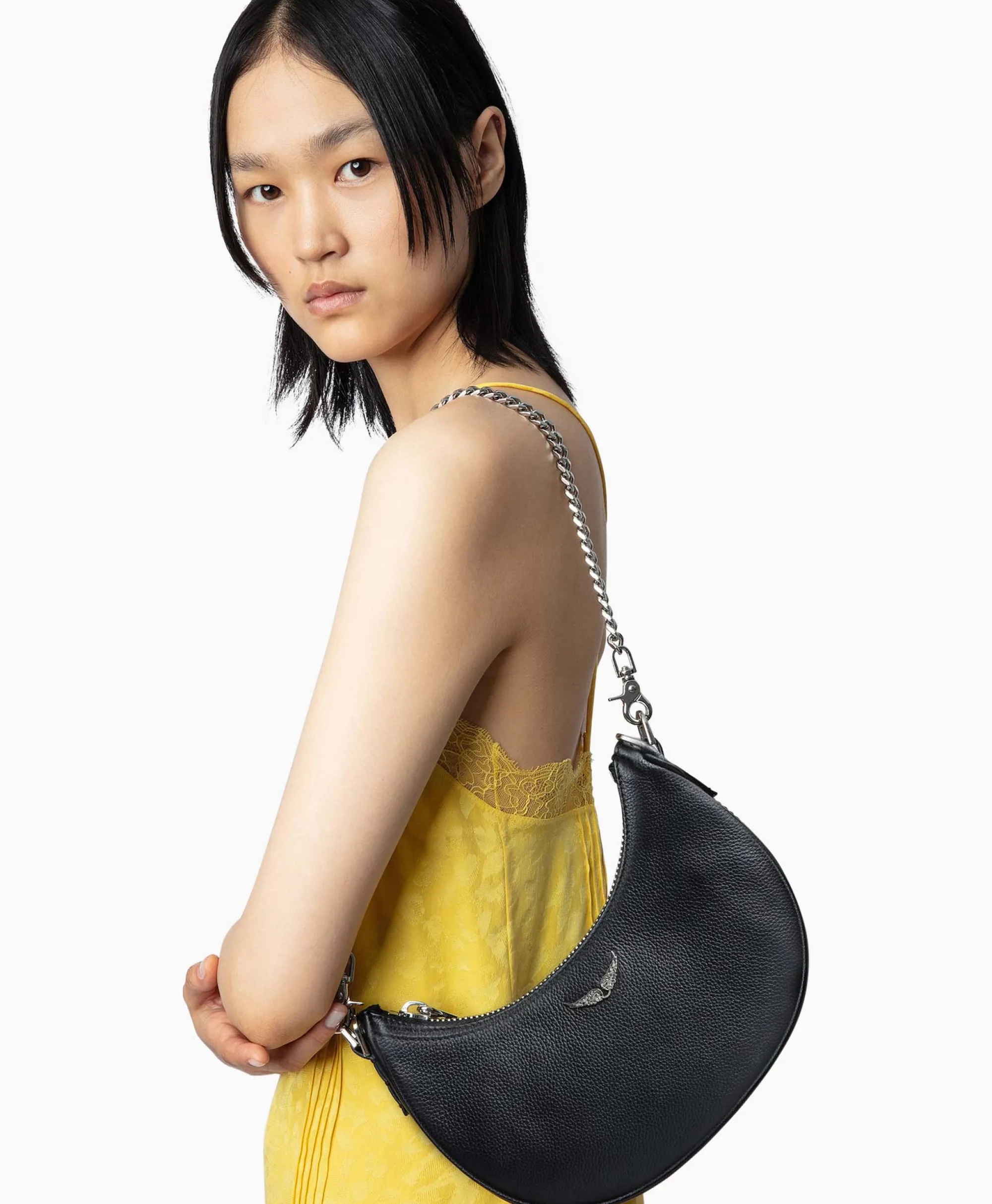 Zadig & Voltaire Zadig & Voltaire Schouder / Hand Tas Moonrock Grained Leather Zwart*Dames Tassen